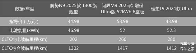 短板方面,问界M9的短板是价格,理想L9的短板是相对平庸的科技感,腾势N9的短板则是续航略短以及口碑积淀不够、智能化方面还有待提升。
