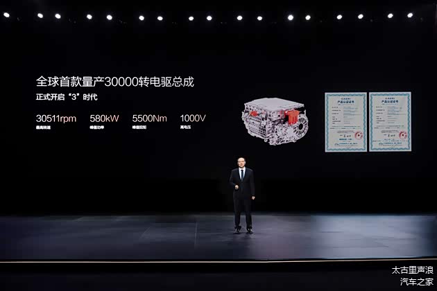 比亚迪发布的3万转电机已经实现量产,最大转速30511转/分钟,电机最大功率580千瓦,车速最高300公里/小时。目前主流电动车电机转速在2万多转。转速高意味着动力强,可以在需求一定前提下降低电机质量、缩小体积,可以实现更长的续航。