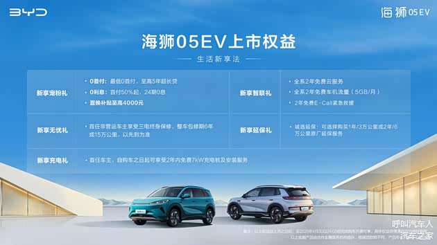 即日起,订购海狮05EV的用户可享0首付0利息、至高4000元置换补贴、全系2年免费车机流量(5GB/月)等在内的多重购车礼遇。