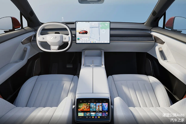 两款车的内饰布局有些相似,均为简洁风格的路线,乐道L60的车内采用T型环抱式布局,不仅配有17.2英寸3K中控屏+8英寸后排娱乐屏+13英寸HUD抬头显示屏,得益于高通骁龙8295P芯片和标配24GB大内存的情况下,车机使用起来流畅丝滑,中控屏的边框也很窄,只有5.35毫米。值得一提的是,乐道L60原车便搭载了小乐X GPT,反应速度足够快的情况下,也支持多指令、可见即可说、四音区识别和连续对话等功能,基本上我们有什么需求的话,直接问小乐即可,不管是出门旅游想做点美食、景点方面的攻略,还是说给孩子使用多种语言讲故事,该车均可满足。