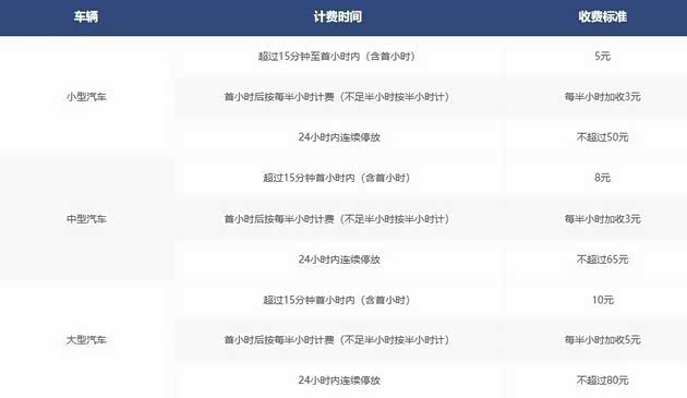 小型车停车,超过15分钟但不足1小时,收费5元。停车时间超出1小时后,每多停半小时需加收3元。24小时内连续停车,最高收费不超过50元。