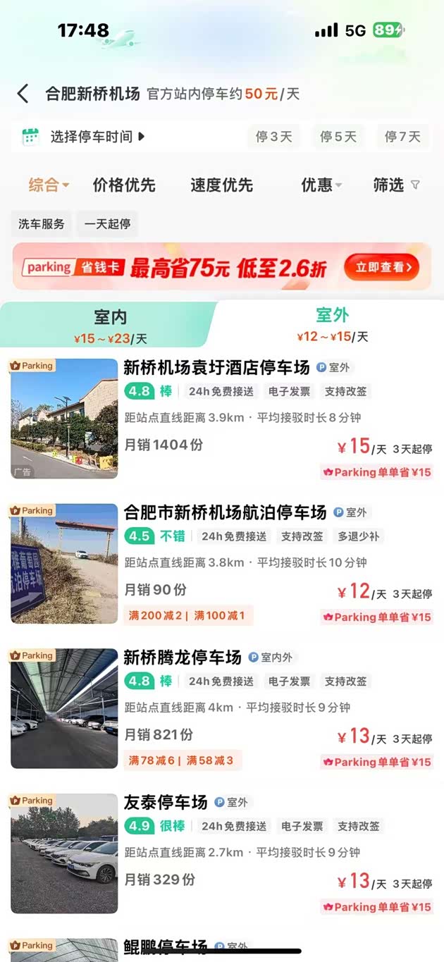 选择自驾前往合肥新桥机场,无疑是一个既明智又惬意的决定。想象一下,你无需在拥挤的公共交通中挣扎,不用经历换乘的种种繁琐,更不必为出租车的高昂费用而忧心忡忡。自驾让你完全掌控自己的行程,随心所欲地享受旅途的每一份舒适与自由。然而,机场停车问题常常成为许多旅客心中的一块石头。找到合适的停车位,既要考虑价格,又要考虑距离,实在让人头疼不已。但在合肥新桥机场,官方停车场提供了24小时最高50元的停车服务,这个价格相对来说还算合理。不过,如果你想要更加经济实惠的选择,那么别急,好消息来了!您只需微信搜索【小强停车】在上面查看附近停车场,你就能在小强停车平台预约到机场附近的停车场,价格低至每天12元起。输入邀请码“58”,还可领取38元停车抵扣券!这样的价格优势,与官方停车场相比,简直是太明显了!不仅费用更加亲民,而且这些停车场距离机场也并不远,你可以轻松快速地往返于机场与停车场之间,无需浪费太多时间。