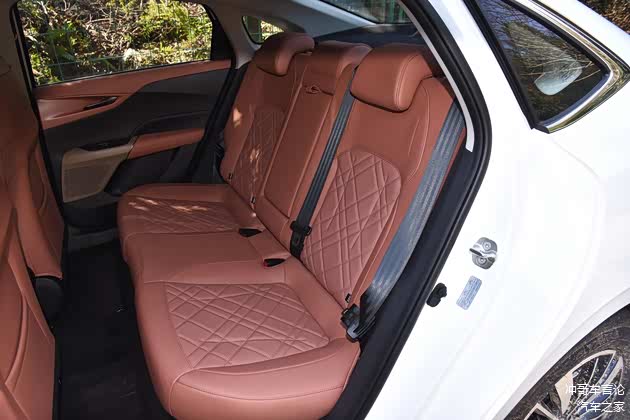 本人身高170cm体验下来,前排座椅调至最低且合适驾驶坐姿后,头部距离车顶约有一拳两指余量(含天窗下沿高度),方向盘支持前后+上下四向调节,较易找到舒适坐姿。主驾座椅坐垫长度490mm(含可伸缩腿托),对大腿承托较为到位,腰部支撑中规中矩,长时间驾驶建议加装腰靠。 保持前排座椅位置不变进入后排,膝部空间约为两拳半(约230mm),头部空间受车顶线条影响缩减至四指(约70mm)。