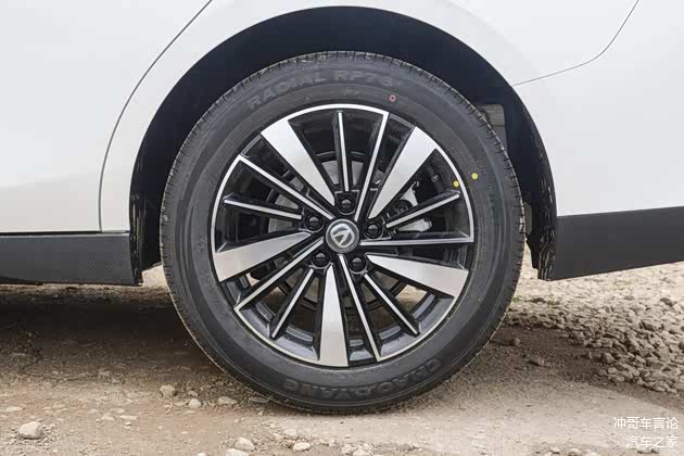 新车标配 17 英寸铝合金轮毂(具体样式为五辐双色设计),轮胎规格为 215/55 R17,轮拱间隙控制在合理范围,兼顾了视觉协调性与通过性需求。C 柱位置采用小三角窗设计,有助于提升后排采光,后门长度占比合理,方便后排乘客上下车。充电接口位于左后翼子板处,快慢充插口集成布置,盖板开启方式为按压式。