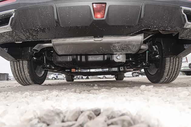 底盘采用前麦弗逊 + 后多连杆独立悬架组合,转向系统为电动助力,最小离地间隙 150mm。实际体验中,悬挂调校偏舒适取向,铺装路面细碎震动过滤较好,但通过减速带时后悬存在轻微余震。转向手感轻盈(支持两种力度可调),中低速指向性尚可,高速变道车身跟随性稍显迟滞。弯道侧倾抑制能力在同级中属中等水平,连续变线时车身回正速度适中。制动脚感初段偏软,需适应后段制动力释放节奏。