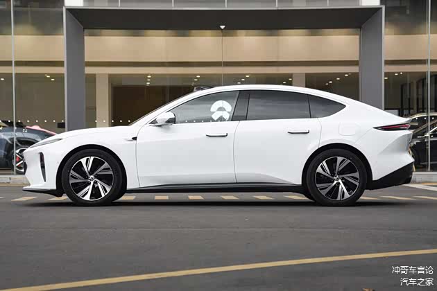 蔚来 ET5 侧面延续轿跑车型的低趴姿态,车身尺寸为 4790×1960×1499mm,轴距达 2888mm,配合 19 英寸铝合金轮毂(轮胎规格 245/45 R19),营造出宽体低重心的视觉效果。溜背式车顶线条从 B 柱开始快速下滑,与小鸭尾扰流板衔接,既优化空气动力学(风阻系数 0.24Cd)又强化运动感。无框车门搭配隐藏式门把手,闭合后与车身形成连续曲面。贯穿前后的双腰线设计:上腰线从前翼子板延伸至尾灯,下腰线在车门处内凹,配合车门底部的立体筋线,增强光影层次感。侧裙采用熏黑导流槽设计,部分版本可选装气辉橙卡钳(需额外选装),与车身颜色形成撞色对比。轮拱采用宽体设计,搭配五辐式运动轮毂,进一步凸显性能取向。整体来看,ET5 侧面通过紧凑的比例、流畅的曲面及细节处的空气动力学优化,兼顾设计美感与功能性。