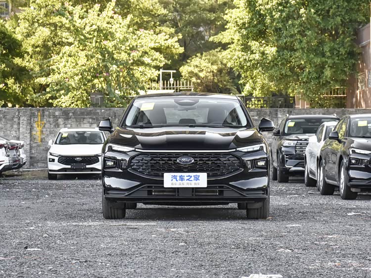 蒙迪欧 2025 款 1.5T 混动版的前脸设计透着一股精干的气质,八边形的进气格栅像是被精心裁剪的西装领口,鳞片状的镀铬装饰在阳光下会泛起细碎的星芒。大灯组的设计尤其巧妙,两道锋利的日行灯带像书法提笔的顿挫,向两侧延伸时还带着微微上扬的弧度,让车头平添几分犀利的眼神。前保险杠两侧的导流槽可不是摆设,棱角分明的造型里藏着镀铬饰条,像是给车头戴了副金属边框的眼镜,既有运动感又不显浮夸。