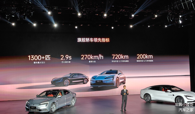 新车拥有超1300匹的马力,零百加速2.9秒,最高车速达到了270km/h,纯电版车型续航里程最高720公里,插电混动版车型纯电续航里程为200公里。