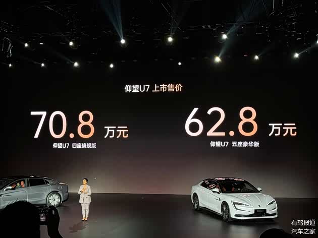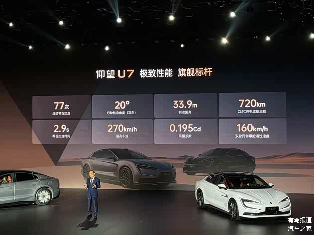 那它最大的竞争对手是谁?如果光从参数上来看,1300匹马力、2.9秒加速等关键词,不妨会让我们联想到小米SU7 Ultra。但仰望U7今天的发布会,主要围绕智能底盘展开,并没有一味去强调性能参数。