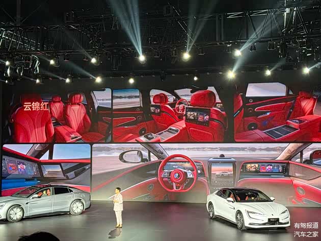 坐进车内,给我第一感受就是用料够下本,Nappa真皮座椅、碳纤维装饰板,处处都透露着奢华的味道。三块大屏组成的U形中控台,配上AR-HUD,给你一种未来科幻片的感觉。内饰配色上,提供珠缎白和云锦红两种风格。12.8英寸OLED曲面屏内置新一代Dlink智能网联系统,并搭载了4纳米座舱芯片,支持全场景语音助手。