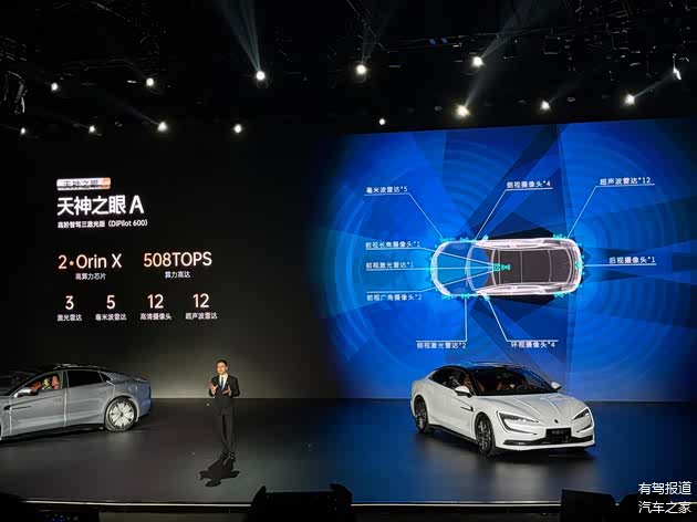 智能驾驶也是仰望U7的一大亮点,新车搭载天神之眼A高阶智驾,基于端到端技术架构,可实现交付即开通,全国都能开。硬件方面,仰望U7标配两颗英伟达Orin-X智驾芯片,算力高达508TOPS,还有3颗超远距激光雷达、5颗毫米波雷达、13颗高清摄像头和12颗超声波雷达,可以实现L2+级智能驾驶辅助功能。