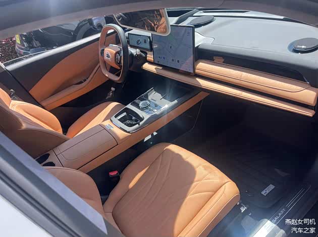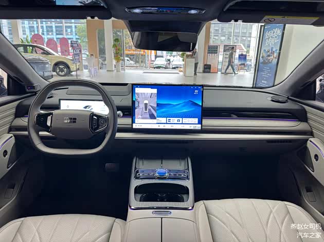 内饰的变化可谓是焕然一新。多层次感的中控台上配备悬浮式中控大屏+全液晶仪表盘+AR-HUD抬头显示的组合,并搭载最新Flyme Auto智能座舱。而全新的曜石灰、檀木棕配色,加之大量皮质/麂皮包覆以及木纹饰板点缀,又营造出豪华氛围,此外,双幅式多功能方向盘+电子怀挡、50W手机无线充电、水晶控制旋钮、三潭印月悬浮音箱、氛围灯的加持,也进一步提升了档次感。