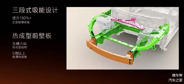 在被动安全方面,车辆依据C-NCAP 2024和E-NCAP 2026双五星标准开发,车身采用钢铝混合结构,其中热成型钢占比超过34%。配备9安全气囊,并在电池安全方面采用多重物理防护设计及高标准测试流程。