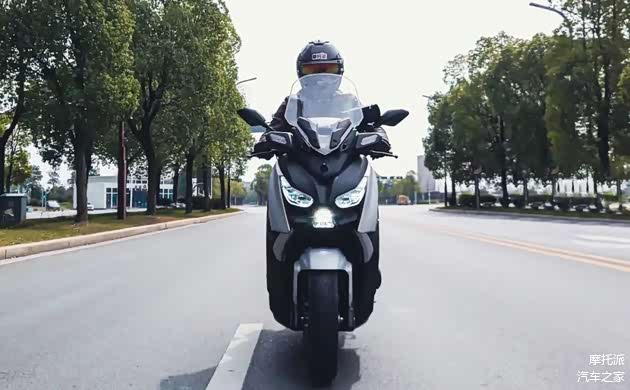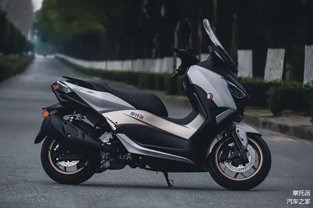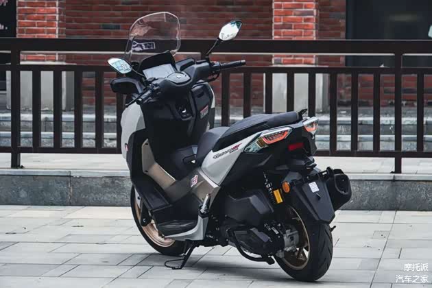 在测评之前,试车组通过官方资料对它有了一个前置印象:外观上致敬了Xmax,设计定位类似于佛沙350,主打一个“豪华运动”。而当实车落地时,我们还是被它给惊住了,这家伙虽说长得像Xmax,但它却是上代Xmax大致轮廓等比缩小后的产物,其体量更接近于常见的150级别。