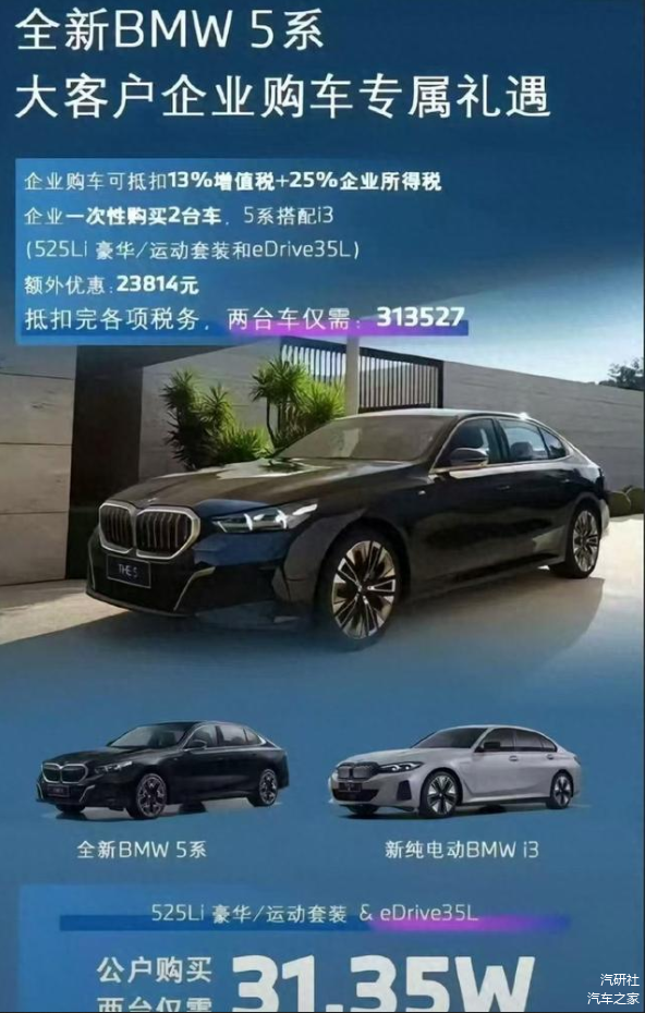 但是购买的车型则要比奔驰那边更合算——一台525Li豪华/运动套装版,“送”一台eDrive 35L,还给你23814的优惠,加上扣税啥的,两台车到手仅需313527元,这还不到当初一台宝马i3的官方指导价,的确相当划算。