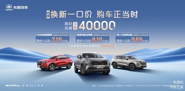 而纵观汽车市场,有着“国民神车”美誉的 哈弗H6无疑是“质价比”的代名词。这款车不仅拥有卓越的品质保障,还不乏超值的惠民价格。就在日前,哈弗品牌推出了“哈弗全系换新一口价”政策,限时优惠至高40000元,还可额外享受国补/地补。其中,哈弗H6换新一口价7.19万起,助力广大消费者以更透明的价格,更轻松的购车体验,轻松享受到“国民神车”带来的卓越安全和品质保障。