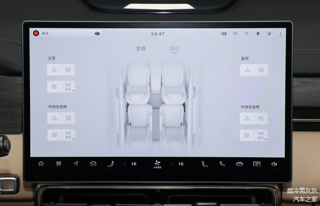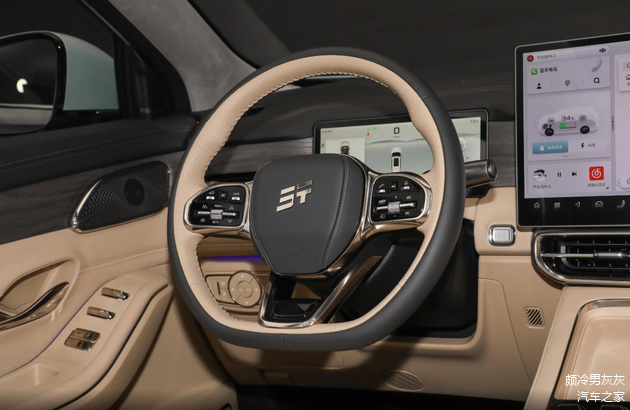 接着我们坐进2025款捷途山海L9的车内,新车的中控设计主要是营造温馨和高级感,同时也没忘记提升科技氛围,所以我们能够看到15.6英寸悬浮式高清中控屏,也有全新怀档设计,这时再配合双色材质包覆的多功能方向盘、麂皮材质包覆的顶棚,视觉与触觉均能带来亮点。而且按照官方公布的配置信息,2025款捷途山海L9采用高通8155芯片,配备四音区语音控制和AI语音助手,因此互联体验和驾乘便利性也得到了保证。