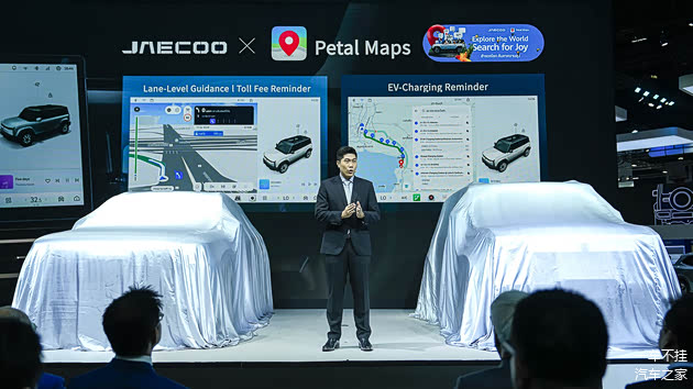 在车展现场,奇瑞OMODA&JAECOO汽车与华为HMS for Car展区围绕此次合作进行了双向联动。奇瑞OMODA&JAECOO汽车展区通过图文和视频展示了花瓣地图的智能导航服务,吸引了众多参会者驻足观看。同时,华为HMS for Car展区特别展示了JAECOO 6,展示了双方在智能车载领域的合作成果。