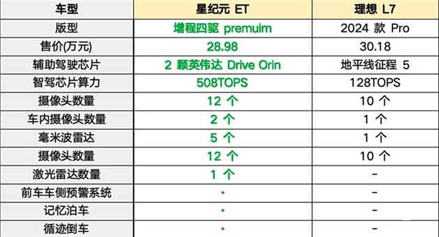 星纪元ET的智能座舱在智驾领域实现突破。搭载双英伟达Orin-X芯片,AI算力达508TOPS,配合激光雷达与5个毫米波雷达,实现高速NOA与自动泊车功能。星纪元ET其猎鹰智驾系统具备全场景智驾辅助能力,包括高速领航辅助、城市领航辅助和智能泊车等功能。在城市复杂路况下,星纪元ET能够轻松应对各种挑战,提供老司机般的驾驶体验。而理想L7的智能驾驶系统虽然也具备一定的辅助功能,但在复杂路况下的表现和数据支持方面尚显不足。
