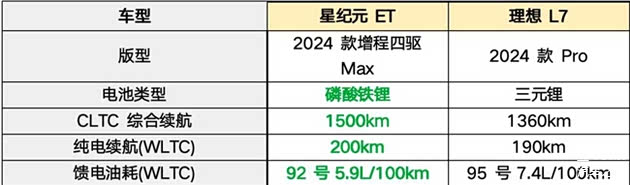 在用车成本方面,星纪元ET增程MAX在8月10日的上海芜湖续航双城记中,以101.17元完成了350km的城际续航。而理想L7的WLTC馈电油耗为6.5L/100km,星纪元ET增程四驱的WLTC馈电油耗仅为5.9L/100km,更低的油耗意味着更低的使用成本。