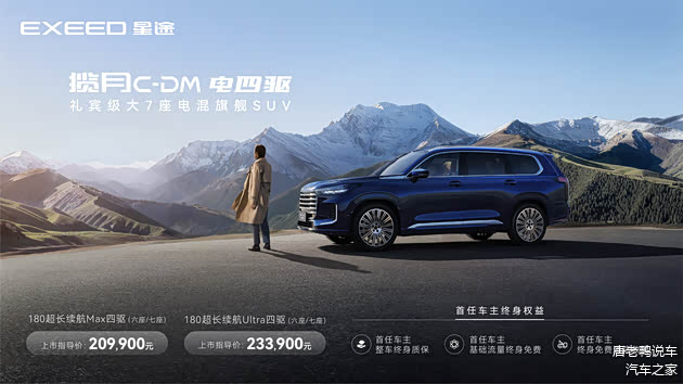 基于此,奇瑞高端品牌EXEED星途率先破局,推出了“大七座电混旗舰SUV”揽月C-DM,新车搭载全球首创四擎四驱超混技术,以超五米车长、全系雪豹四驱、飞鱼底盘、全球五星安全四大硬核标签,重新定义“全能电混旗舰”。值得一提的是,新车起售价仅20.99万元,远低于市面上诸如理想L8、问界M7等同级产品。 用20万级价格实现百万级豪车体验,终结市场“妥协式创新”,正式“开打”混动SUV市场。