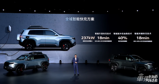 新车还搭载了全域智能快充方案,首创了智能分流快充技术,充电功率最大可达237千瓦,30~80%的充电时间缩短至18分钟。