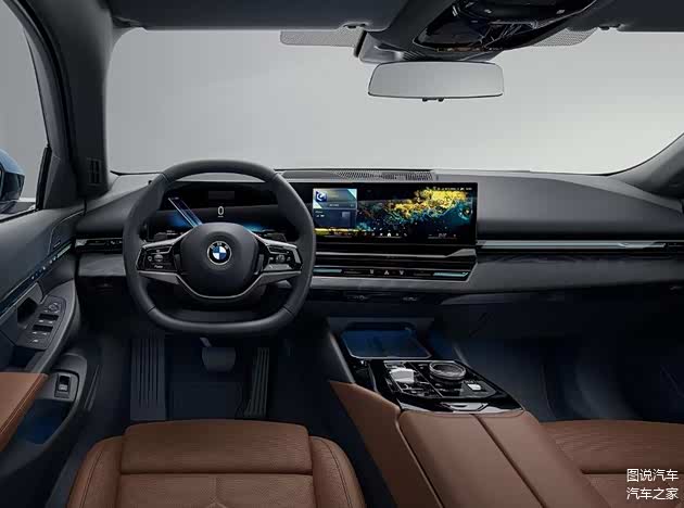 来到内部,5系的中控台采用双曲面联屏设计,中控台加入了鎏金饰板和氛围灯,集科技和豪华与一身。该车全系采用 iDrive 9 系统,操作较为流畅。