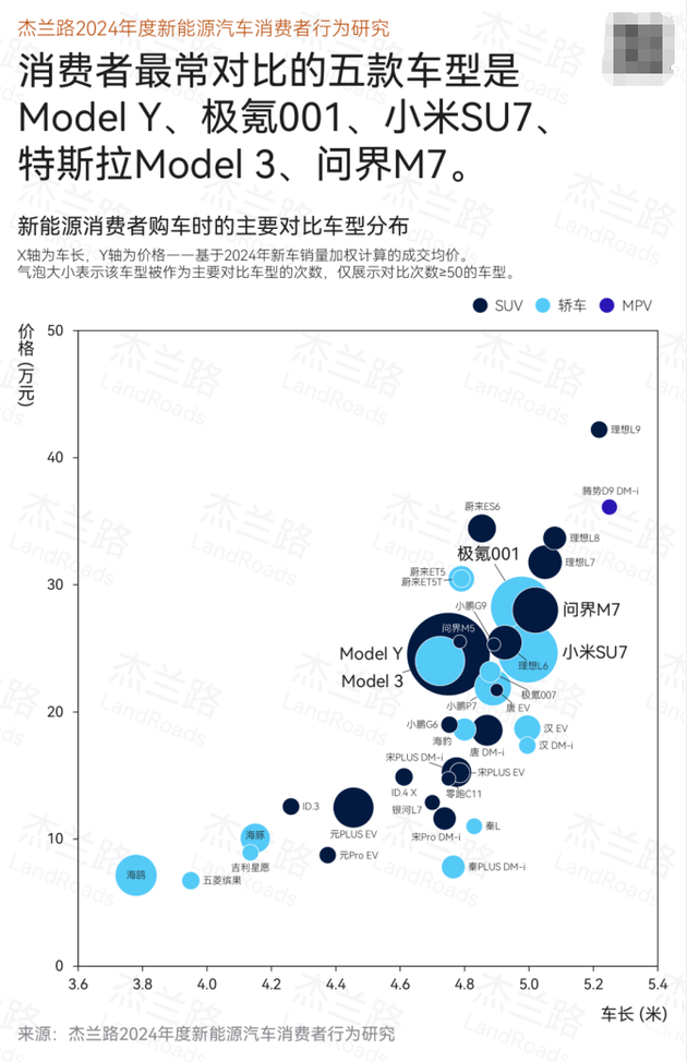 近日,汽车市场数据调研机构杰兰路重磅发布《2024年度新能源汽车消费者行为研究》,根据5000多位新能源购车用户的人群特征、购车旅程及使用体验,得出若干关键结论。报告指出,问界新M7在新能源消费者购车时的主要对比车型分布象限中,成为消费者最常对比的五款车型之一,对用户具备较强吸引力,市场表现被广泛看好。