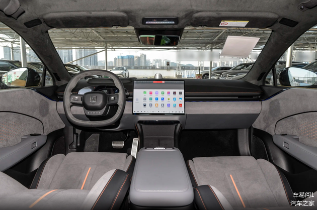 极氪007的座舱设计迎合了当前主流的简约科技风格,中控台面采用了深浅组合的面料包覆,并通过横向贯穿的出风口形成隔断效果,增加了中控台面的层次感。中部区域配有一块15.05英寸的OLED 2.5K屏,仪表则为13.02英寸的全液晶屏,两者共同构成了车内的智能化交互界面,怀挡的结构不仅操作便捷,也让中央扶手区间留有手机无线充电板等结构,用户也能有更多空间用于储物。
