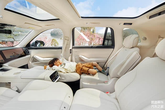 在储物能力方面,六座版全车多达41处储物空间,展现极致巧思。后备箱常规容积353L,如果放倒三排座椅,后备箱空间可以拓展至1284L,并且还拥有39L暗格。再加上二排按压自动弹开的杯托、CNSL下方的镂空储物空间等设计,真正实现了对空间的极致利用。五座版标准容积976L,二排放倒后拓展至2348L,可容纳冲浪板或折叠自行车。另外,五座版二排还配有9L百宝箱,可以将纸尿裤、游戏手柄等零碎物品归置有序。