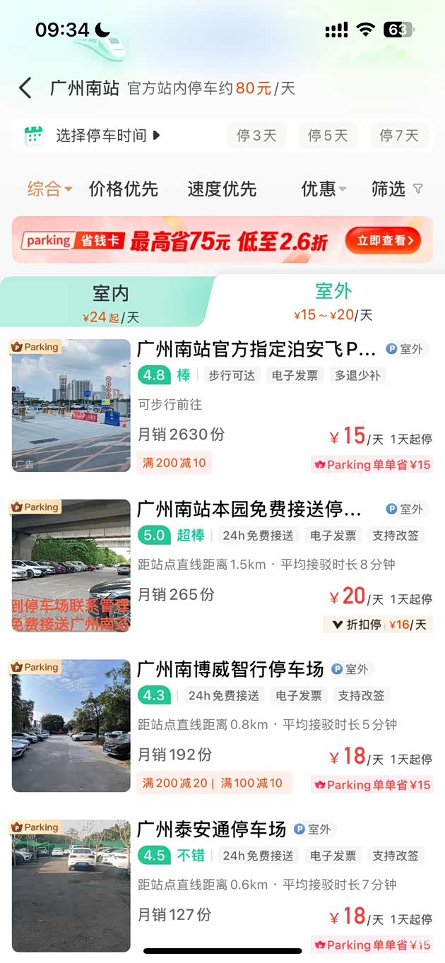 面对官方停车场80元/天的收费标准,“小强停车”平台为广州南站周边带来了超值的替代方案,每日仅需15元,比官方价格低了65元。更令人心动的是,您只需微信搜索【小强停车】在上面查看附近停车场并输入邀请码“58”,您还能额外获得38元的停车抵扣券,实际支出更加划算。这些周边停车场不仅收费亲民,还提供贴心的摆渡服务,直接将您送至广州南站入口,省去了拖运行李的麻烦。不论是短途出差还是长途旅行,小强停车都能让您的停车安排更经济、更省心。