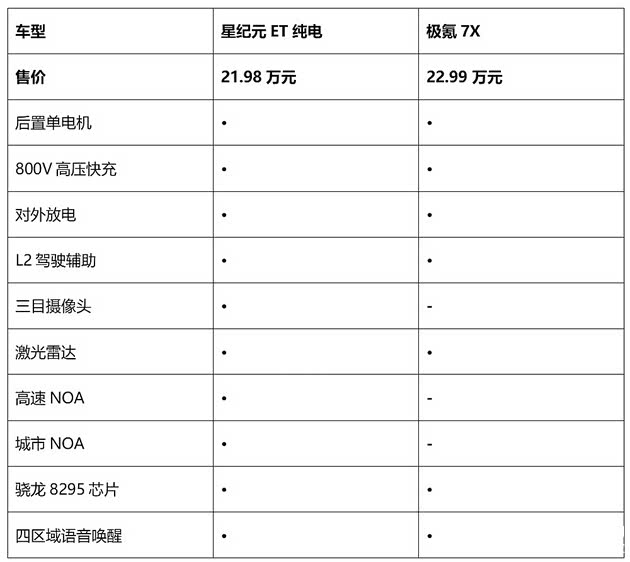 两款车都有自己的优势,星纪元ET的优势在于更大的内部空间和更高的智能化水平;极氪7X的优势则在于更强的动力输出。
