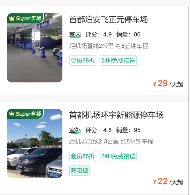 到首都机场停车,有两个地方的停车场可以选择: