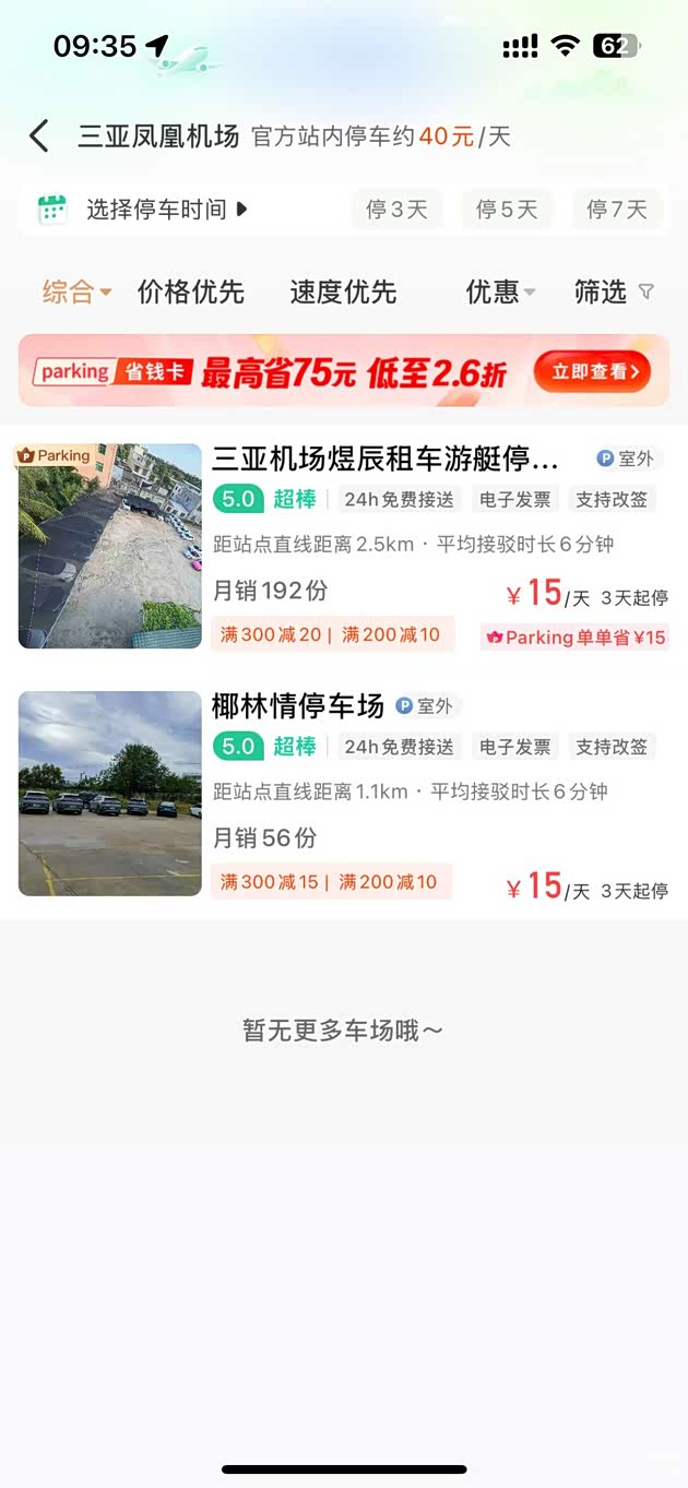 相比官方停车场40元/天的收费标准,“小强停车”平台为三亚凤凰机场周边提供了超值的停车选择,每日仅需15元,比官方价格低了25元。更棒的是,您只需微信搜索【小强停车】在上面查看附近停车场并输入邀请码“58”,您还能额外获得38元的停车抵扣券,实际支出更加划算。这些周边停车场不仅收费低廉,还提供便捷的接送服务,直接将您送至机场入口,省去了拖运行李的麻烦。不论是短途出行还是长假期,小强停车都能让您的停车安排更经济、更轻松。