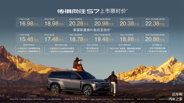 作为传祺品牌精心打造的旗舰之作,向往S7自亮相以来便备受瞩目。它不仅仅是一款车,更是传祺对未来出行方式的一次深刻诠释。新车上市限时价区间为16.98万元至22.38万元,顶配车型Ultra四驱激光雷达版在享受国家补贴后,价格低至20.88万元,而为了满足更多消费者的不同需求,传祺还特别推出了Pro版,国补后价格更是亲民至15.48万元。这样的价格策略,无疑让向往S7在激烈的市场竞争中占据了先机。