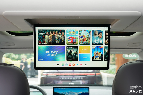 同时,消费者喜闻乐见的“大彩电”—15.6英寸高清后排吸顶屏,1080P高清分辨率,支持语音、手机遥控、触控等多种操作方式,可实现看视频、K歌等多种娱乐活动,还支持双屏联动。全车搭载21扬声器,打造7.1.4豪华音响布局,音响功率达到2160W,配合杜比全景声,可提供沉浸式的音乐体验。加之车辆出色的隔音性能,在车内看电影可以非常享受。