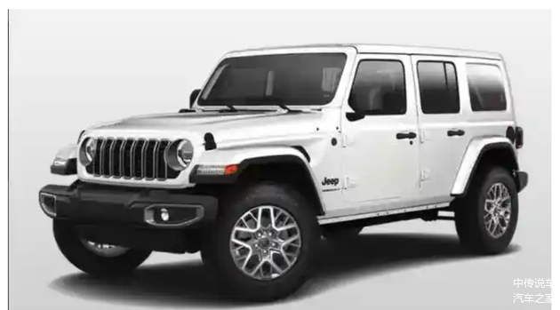 车身侧面设计延续了牧马人家族的方正硬派风格,搭配尺寸较小的17英寸黑色轮辋,进一步突出了越野特点。轮毂经过熏黑处理,大尺寸设计使其显得更加霸气。车辆尾部设计同样硬朗,标志性的外挂式备胎和黑色处理的后保险杠,彰显出强大的越野气息。