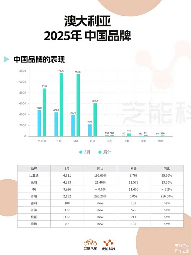 ● 中国品牌在澳大利亚市场强势崛起,总销量达21,358辆,同比增长21%,超越韩国(13,288辆,-3.4%),成为第三大进口来源国。
