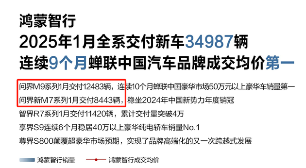 而赛力斯集团最大销量担当就是AITO问界了,来自鸿蒙智行官微数据,1月份 问界M9销量12483辆,问界M7销量8443辆,两款车销量20926辆,加上销量较低的问界M5,1月问界销量也超过了2万辆。再看上边赛力斯集团产销数据,1月赛力斯汽车销量仅16432辆,与鸿蒙智行公布的问界销量超2万辆相差就有点大了。为什么鸿蒙智行和赛力斯集团公布的销量误差如此大呢?不过,销量都是在下滑。