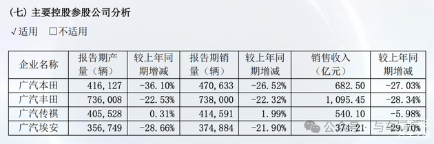 广汽本田销量下滑26.52%,收入减少27.03%;广汽丰田销量下滑22.32%,收入缩水28.34%。直接导致收益锐减73.19亿元,较上年减少13.41亿元。