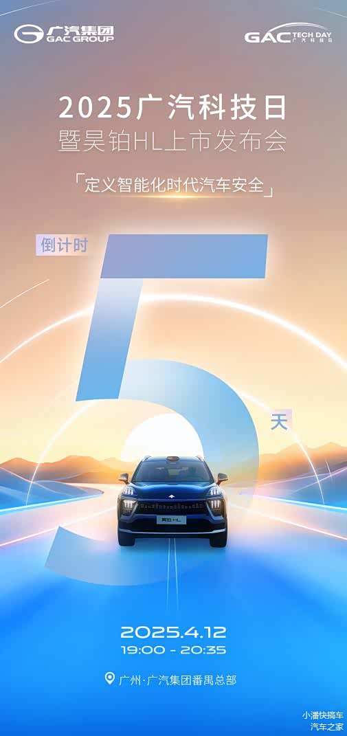 4月12日晚,2025广汽科技日暨昊铂HL上市发布会即将在广汽集团番禺总部盛大举行。届时,广汽集团将重磅发布汽车安全领域的最新科技成果,以体系化安全科技重新定义智能化时代汽车安全。广汽集团旗下高端智能新豪华SUV——昊铂HL也将正式上市。