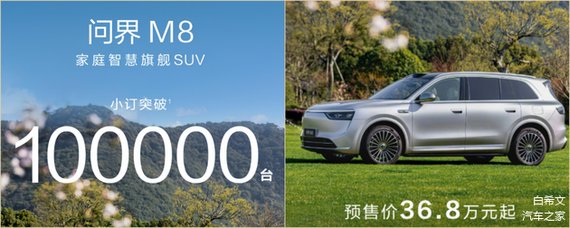 到现在为止依旧没有确定具体上市日期的 问界M8,仅仅开启预售一个月就收到了10万订单,这一成绩似乎只有去年的小米SU7可以匹敌。然而作为一款36万左右的中大型奶爸车,M8是如何做到的?