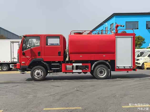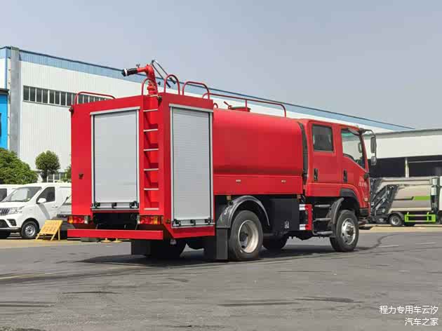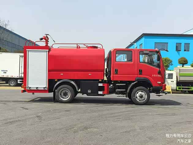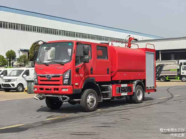 整车型号:CLW5120GSSADY,原厂双排驾驶室,罐体满载容积6.06立方,采用优质碳钢材质(罐体内高级防腐处理),装备CB10/30型常压消防泵,PS30型消防炮。带前冲、后洒功能,整车消防红。