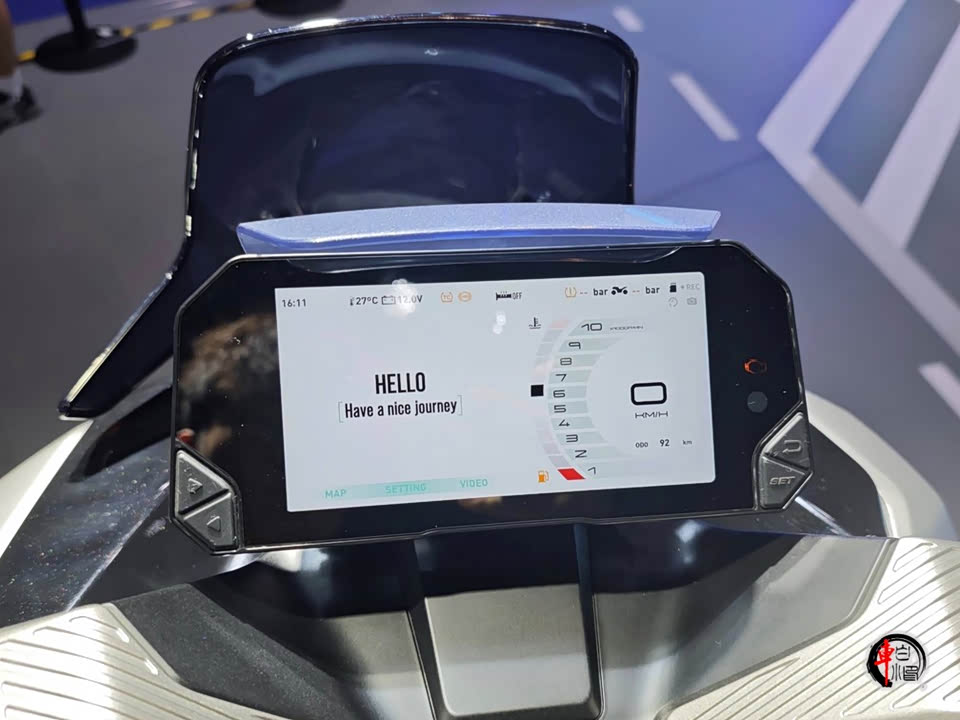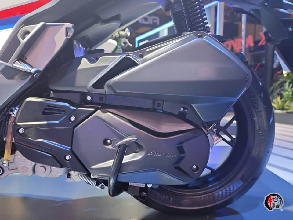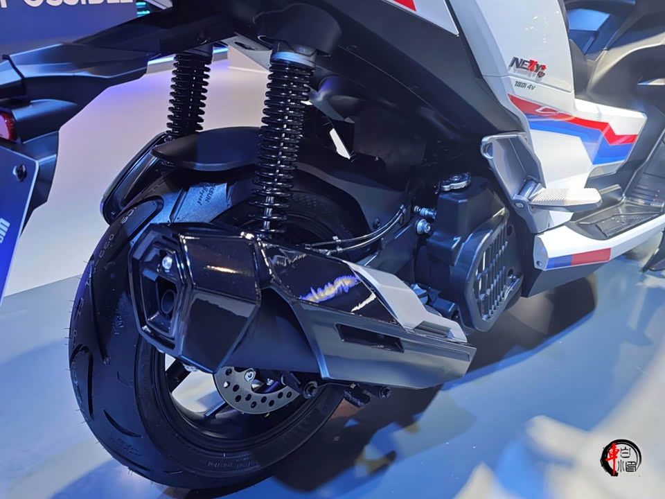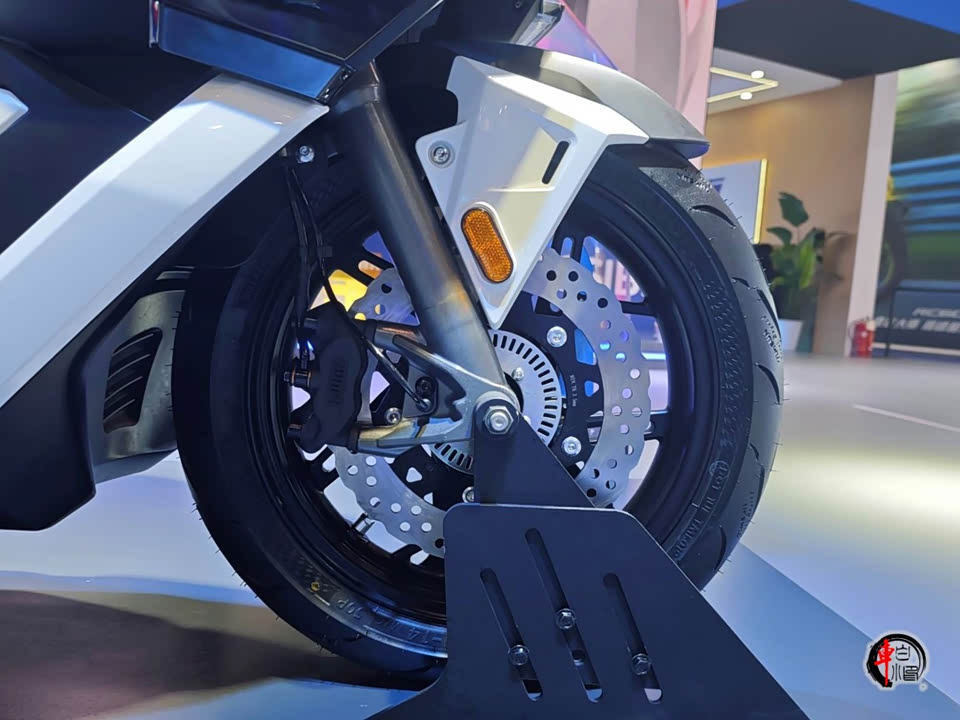 底盘方面,采用高强度龙骨车架,136kg轻量化且抗扭强度提升,1315mm短轴距保证操控灵活。座桶可容纳3/4盔及骑行装备,前手套箱有双USB接口。不过,8L油箱容量一般,765mm座高对170cm以下骑手不太友好。减震系统为传统伸缩式正置前叉与后液压阻尼双枪减震,刹车系统前后盘刹,标配双通道ABS和TCS,提升行车安全与稳定性。