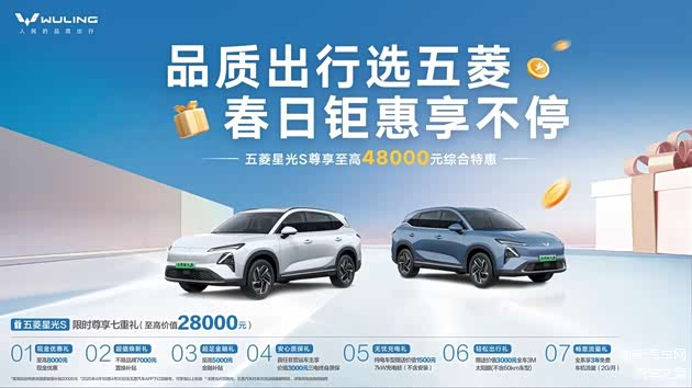 销量持续领跑的同时,五菱在4月推出“品质出行选五菱,春日钜惠享不停”系列优惠政策,进一步降低星光S的购车门槛。即日起至4月30日,购买星光S尊享至高48000元综合特惠,包含至高8000元现金优惠、不限品牌7000元置换补贴、至高5000元金融补贴、首任非营运车主享价值3000元三电终身质保、纯电车型赠送价值1500元7kW充电桩(不含安装)、赠送价值3000元全车3M太阳膜(不含60km车型)、全系享3年免费车机流量(2G/月)等。从购车前的福利补贴到购车后的服务保障,五菱始终以用户需求为基础,通过国家补贴+品牌让利双重赋能,让用户感受到切实利益。