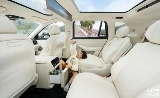 走进车内,问界 M8 的内饰设计同样令人眼前一亮。采用三联屏布局,包括副驾屏与中控屏,车机搭载 HarmonyOS 4 系统,流畅的操作体验与丰富的功能让人爱不释手。同时,车内配备了 HUAWEI SOUND 多个扬声器音响,为乘客带来沉浸式的听觉享受。HUD 抬头显示系统的加入,也进一步提升了驾驶的便利性与安全性。此外,中控下方和中央扶手箱区域设计了较大的储物空间,还贴心地设置了杯架与无线充电面板,在细节处彰显了对用户需求的考量。