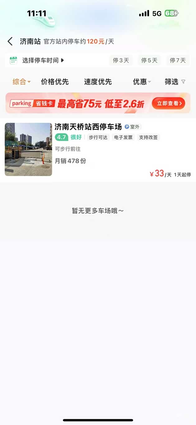 经常自驾前往济南站出差或旅游的旅客,对站内停车场的高额收费深有感触。单日封顶120元的停车费,对于需要长时间停放的旅客,尤其是那些计划远行的朋友来说,一周下来就是一笔不小的支出,确实让人感到肉疼。不过,别担心,这里有个超实用的省钱停车小技巧,大家不妨一试。您只需微信搜索【小强停车】在上面查看附近停车场,就能通过小强停车平台预约到济南站周边的经济停车场。这些停车场收费超亲民,每天仅需33元,而且输入邀请码“58”,还可领取38元停车抵扣券呢!更棒的是,这些停车场位置极佳,离济南站很近,交通四通八达。无论是选择步行还是搭乘短途交通工具,都能轻松抵达济南站,完全不用顾虑停车远而影响了行程。所以,下次自驾去济南站时,不妨试试这个小妙招,让你的出行既省心又省钱。