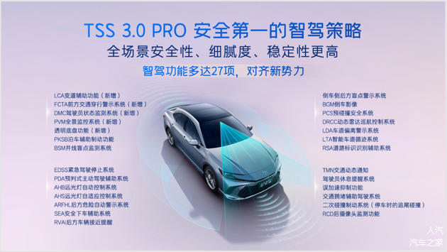 凯美瑞的TSS 3.0 PRO智能驾驶辅助,基于1000亿公里智能驾驶“零事故”大数据,匹配“安全第一”的智驾策略,不仅让智驾功能多达27项,直接对齐新势力,更以丰田独特优势实现全面领先。