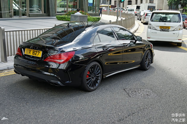 奔驰G55退役后,尾号为X827的车牌挂在了奔驰“运动型”四门轿跑上,这辆车的车身尺寸并不算大,车长还不到4.7米,不过,价格可不便宜,因为这是奔驰CLA 45 AMG。据了解,奔驰CLA车型于2013年正式发布,初代车型上市不久,张智霖就买了一辆,此款车虽说只有4个缸,但搭载的是2.0T 涡轮增压发动机,最大输出功率为360马力,最大扭矩为450牛·米,百公里加速约4.6秒,就加速性能而言,比奔驰G55要快。2013年,奔驰CLA 45 AMG在香港的售价为80万港元。