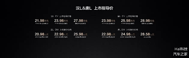 以超级e平台全域千伏架构,汉L EV重新定义中高端纯电旗舰的技术标准,让20万以上的主流纯电,正式进入兆瓦闪充、油电同速的新时代!汉L DM标配第五代DM技术,可满足用车强度更高的用户所需,让工作与生活更好平衡。同时,汉L全系标配智能底盘、天神之眼 B高阶智驾、DiLink 150高阶智舱,实现智电融合。此外,汉L采用Loong Face龙颜美学,并坐拥旗舰豪华大满配,更以全球五星安全标准为基底,缔造全维安全。以比亚迪“划时代技术矩阵”领衔,汉L全面展现划时代旗舰轿车风范!